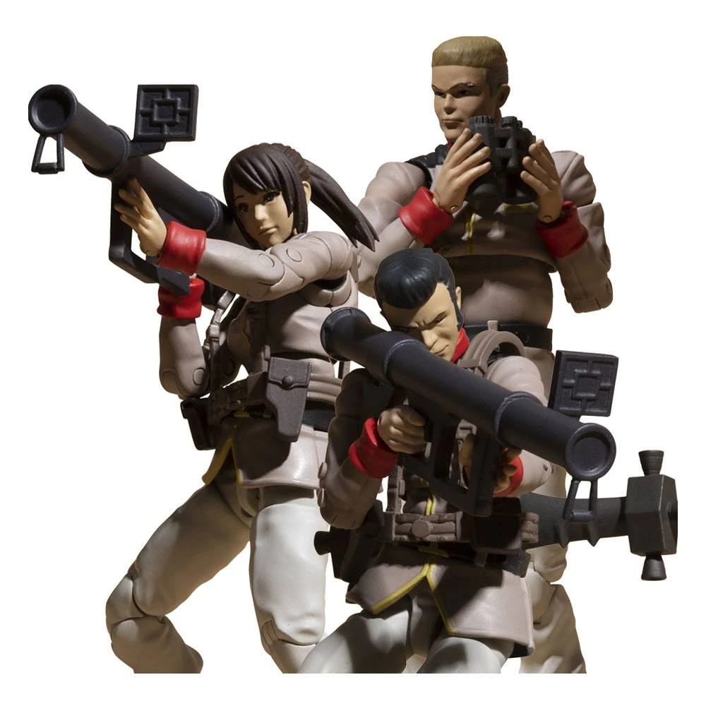 Description du produit « MEGAHOUSE MOBILE SUIT GUNDAM PACK 3 FIGURINES G.M.G. EARTH FEDERATION ARMY SOLDIERS 10 CM »